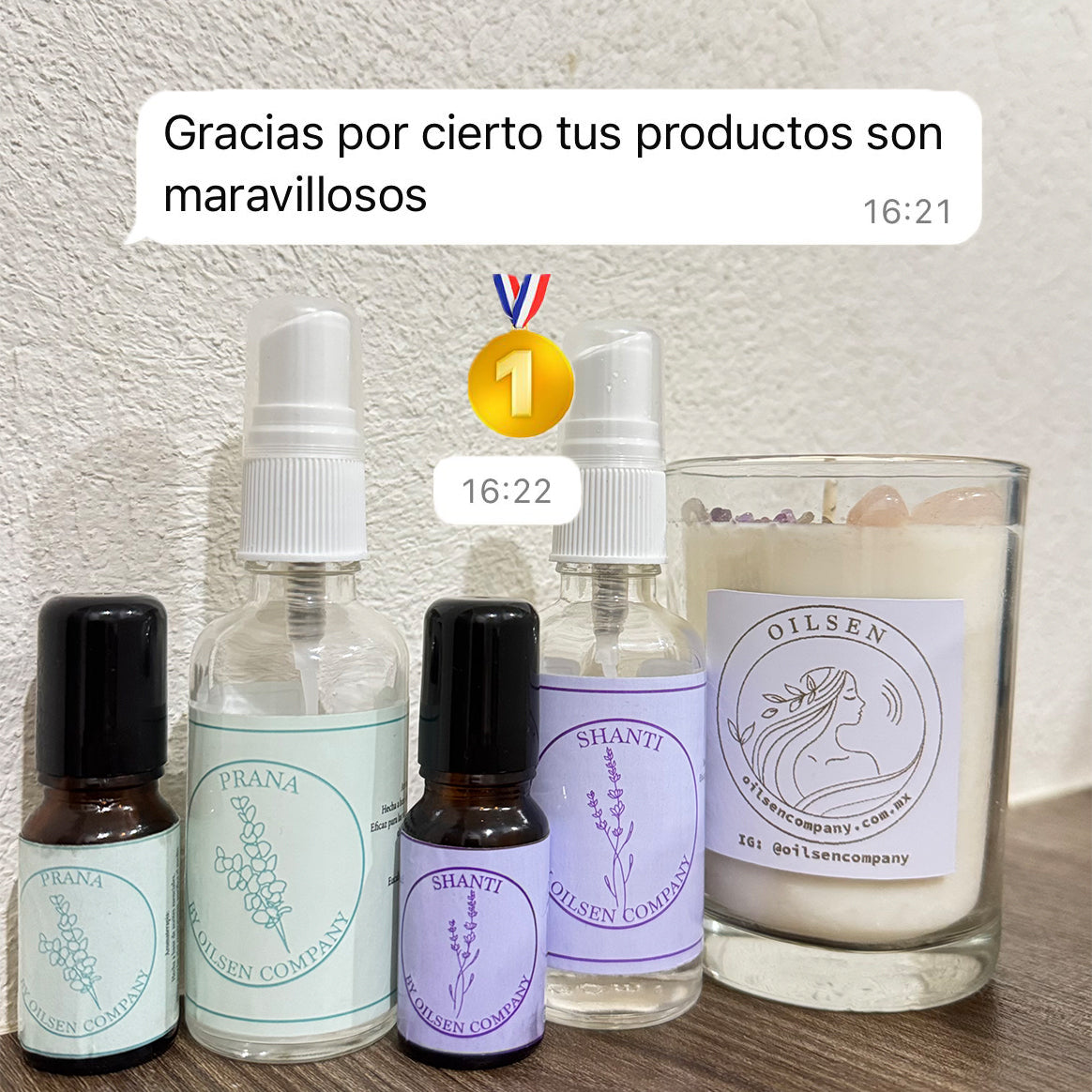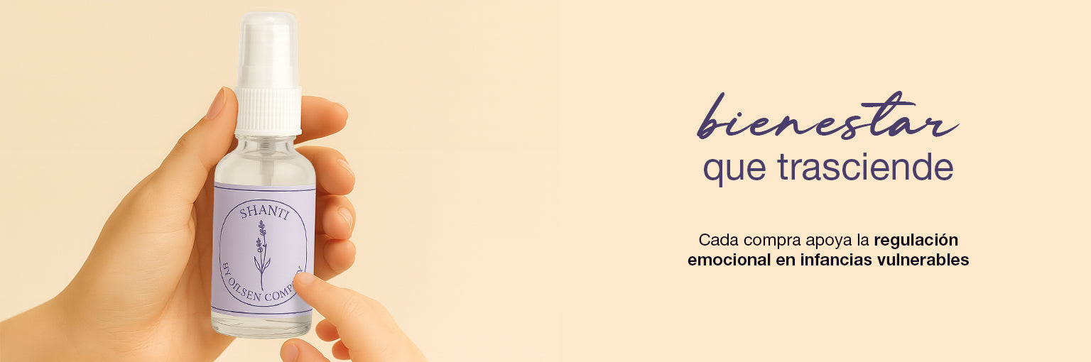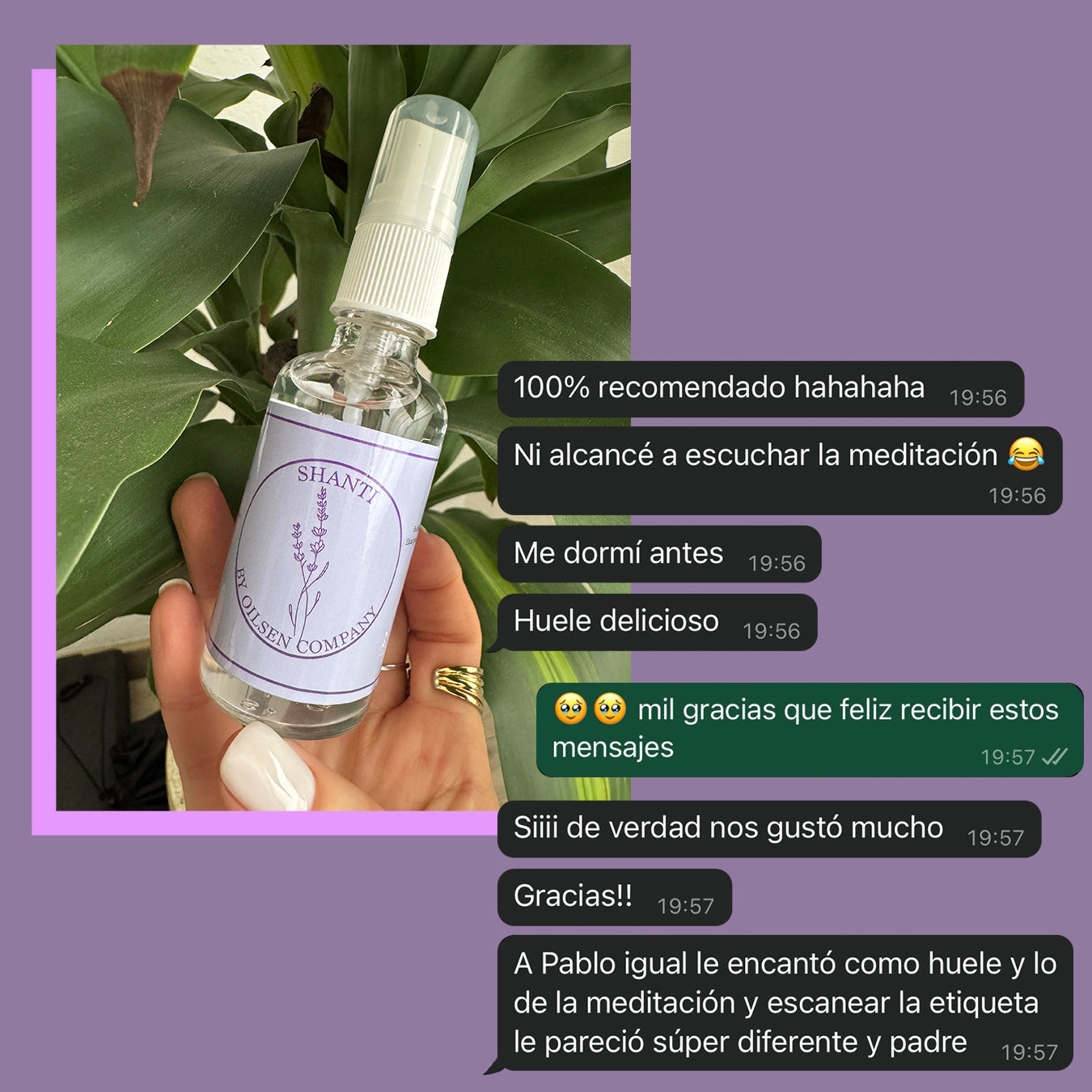 Ver productos ShantiConoce Shanti, aceite esencial puro de lavanda para soltar el estrés, relajar mente y cuerpo, y preparar el descanso profundo.